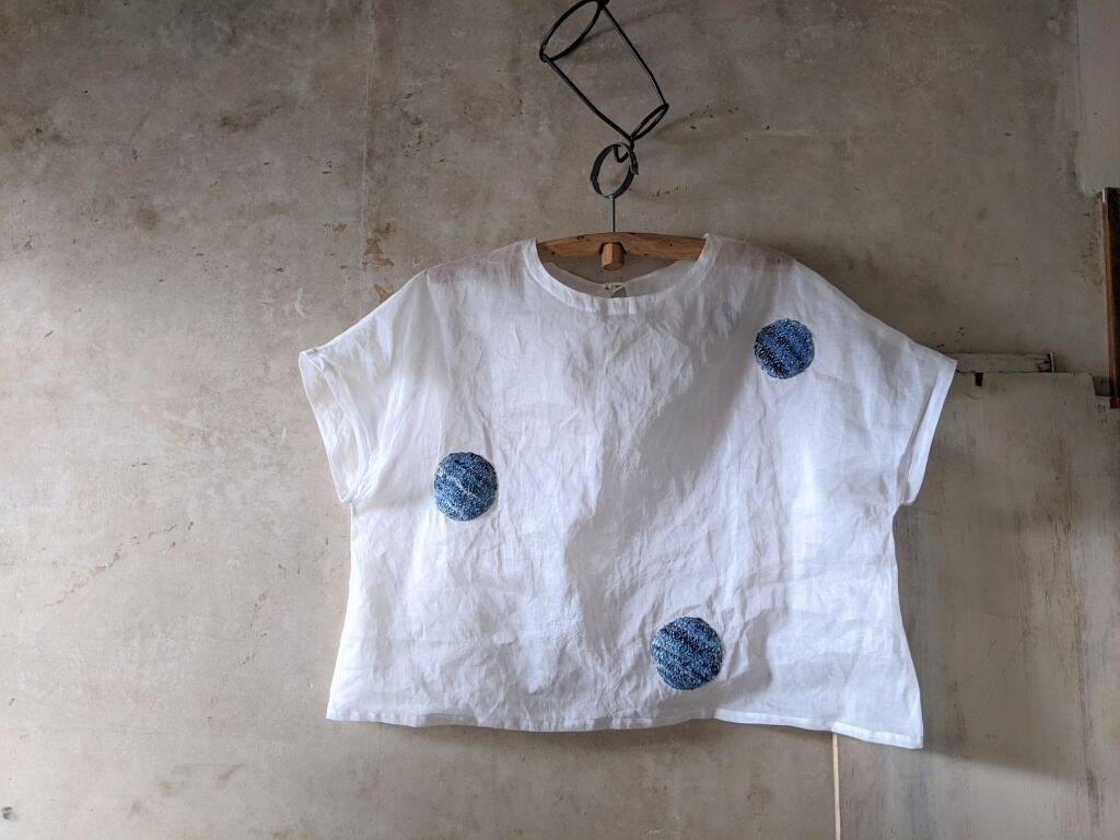 藍染めの裂き織を施していますので、別洗いをお願いします