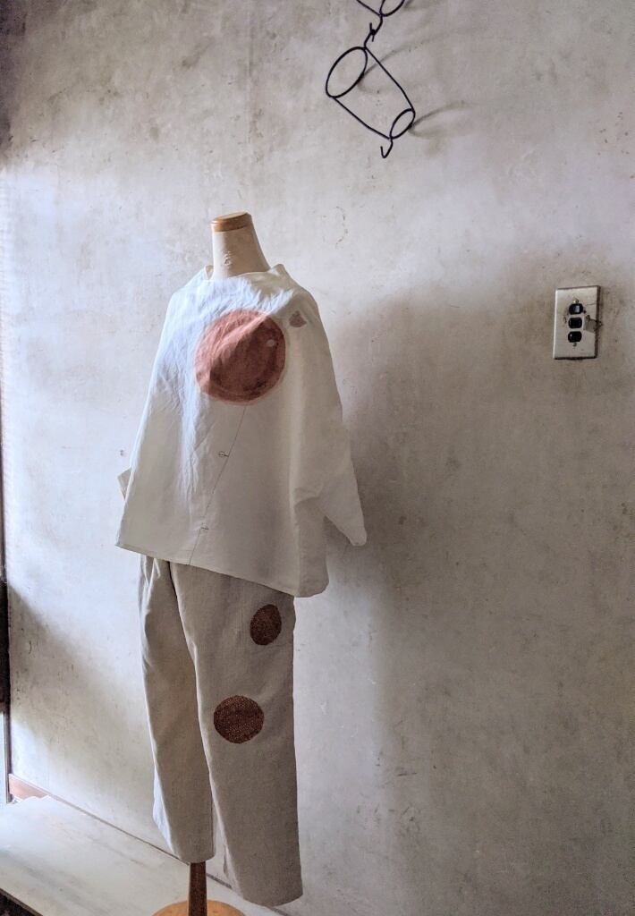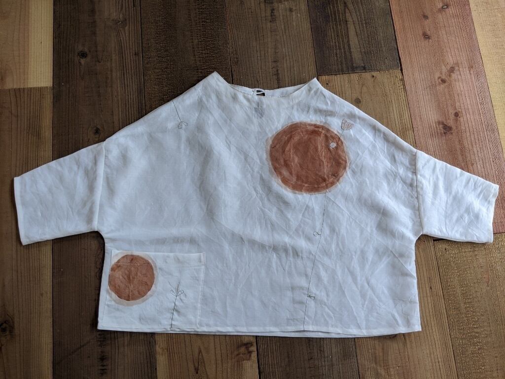 柿渋のドットとお花模様のステッチが入った、チュニックです