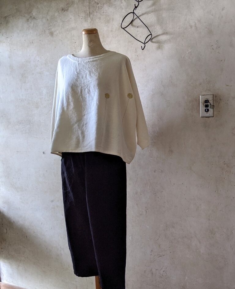短めなチュニックは、パンツとの相性も抜群で、表情がでます